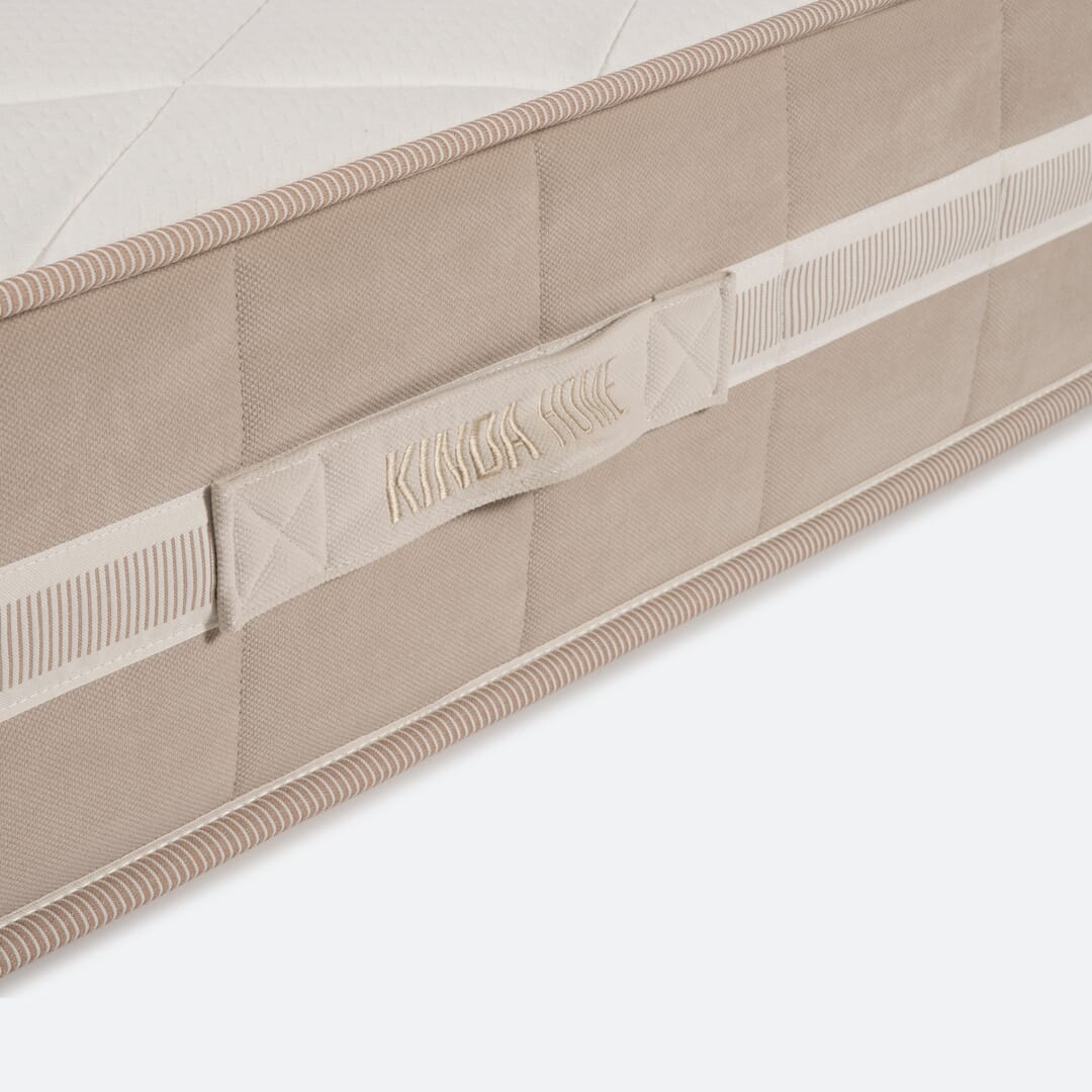 Revestimento do tampo superior e inferior é em tecido stretch de 260 gr/m 2 e 100 poliéster, composto por fibra super soft ant-alérgica de 350 gr/m2.