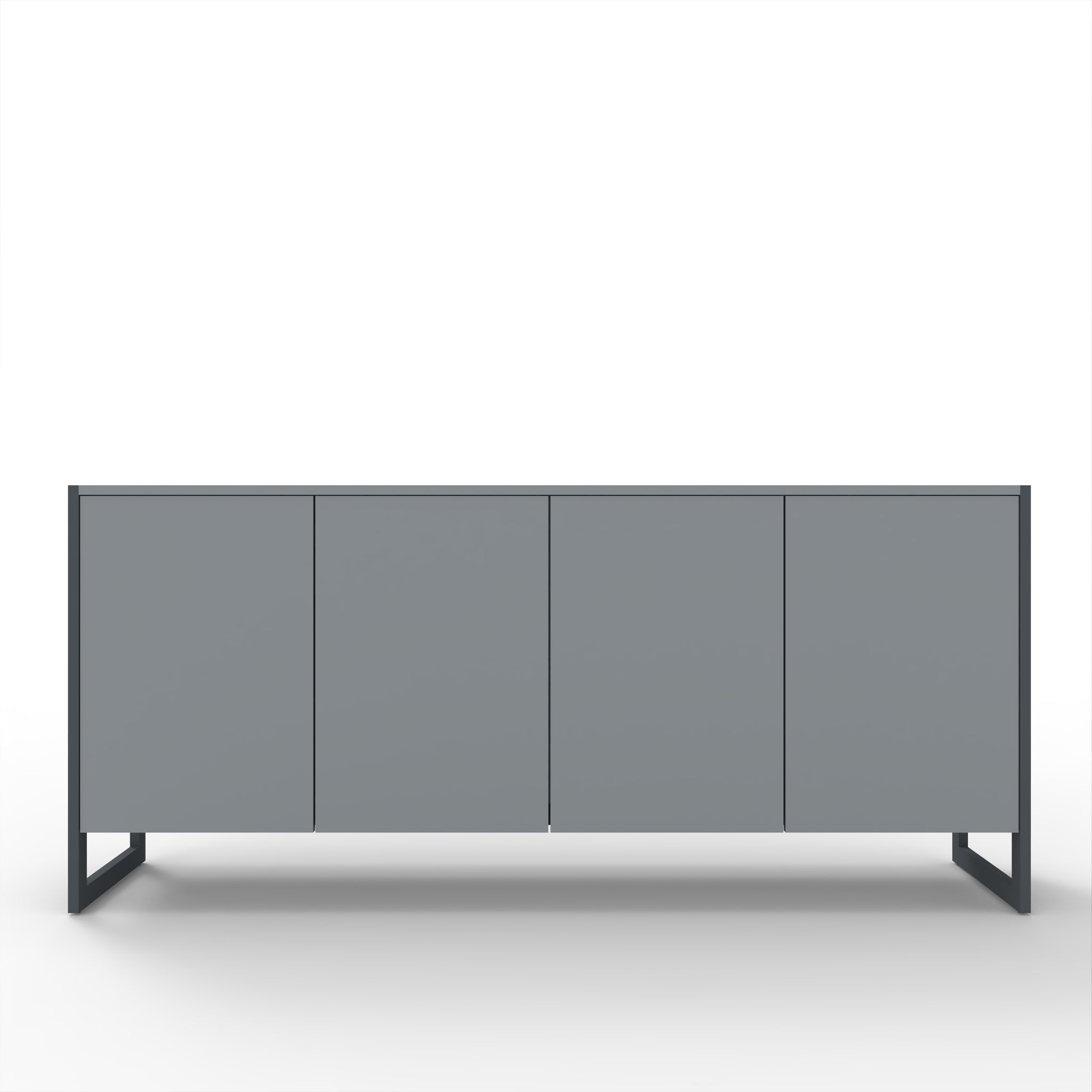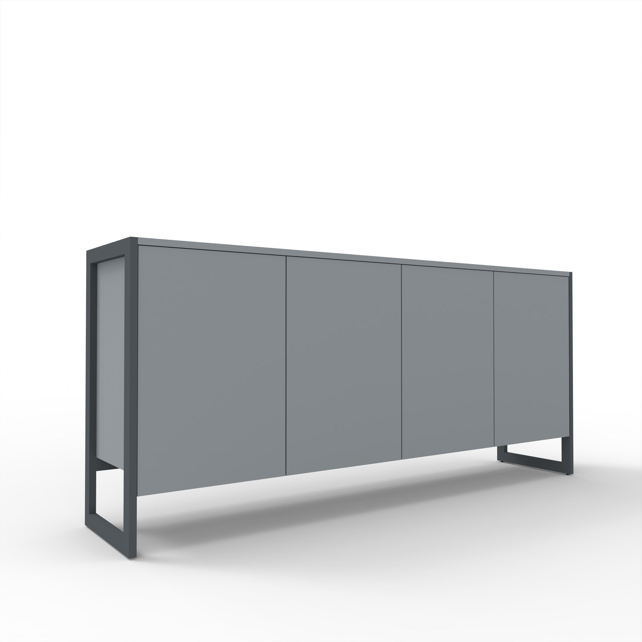 Aparador em melamina cinza, estrutura base em ferro lacado em cinza