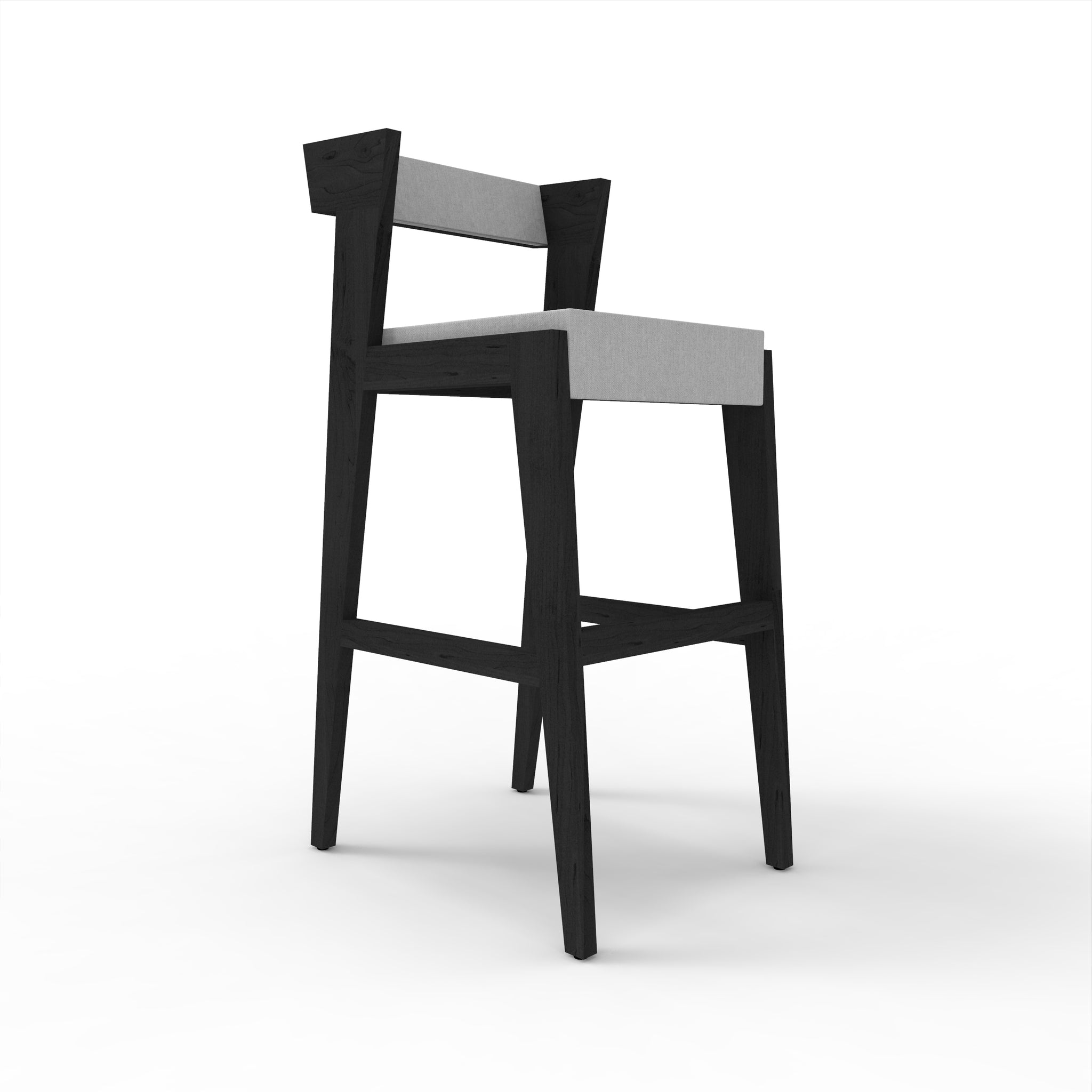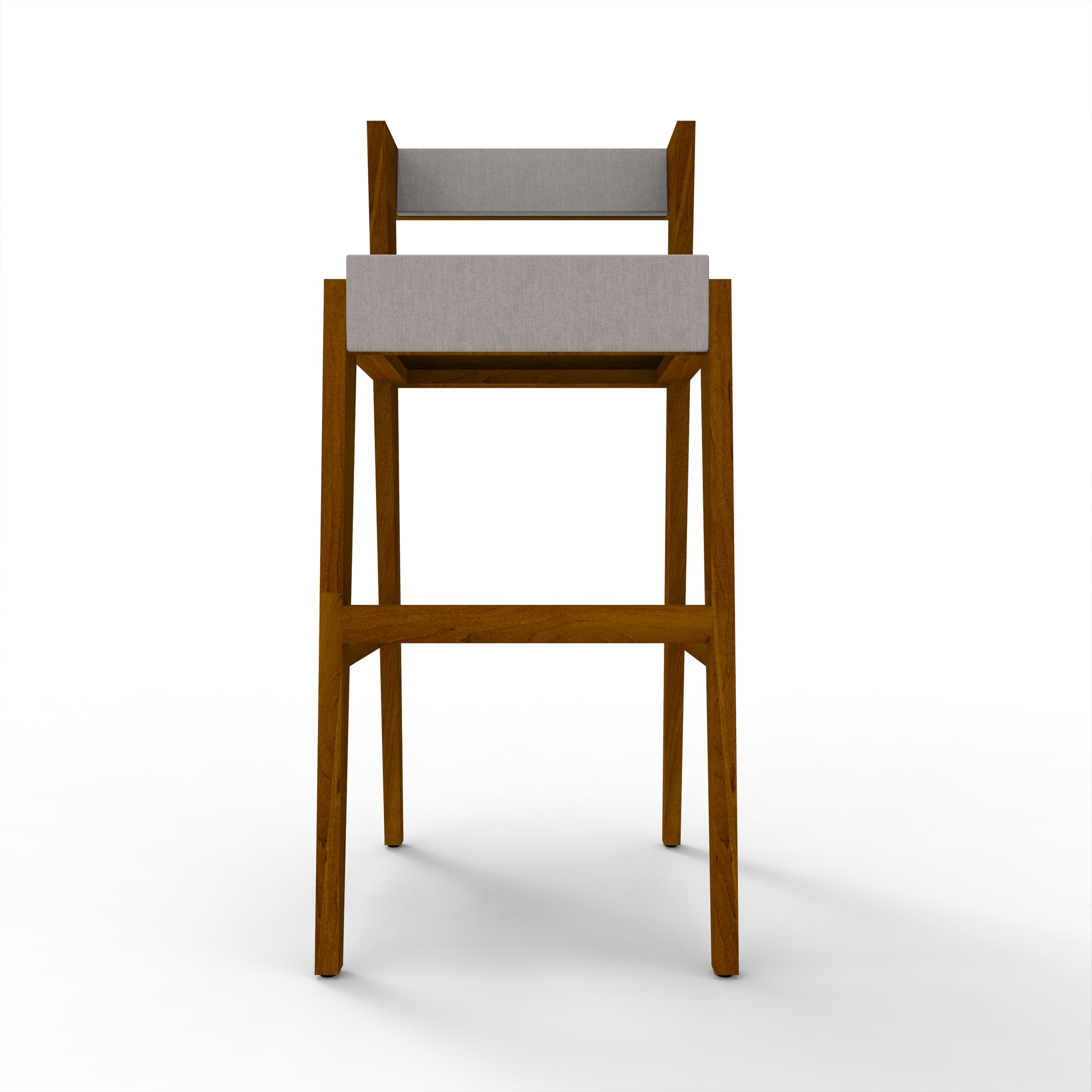Estrutura em madeira maciça, assento e encosto estofado em tecido