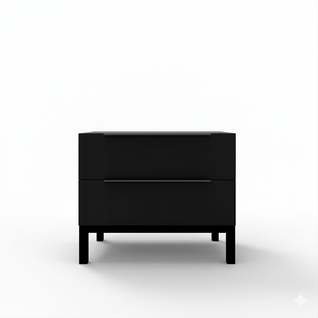 Estrutura em MDF branca, estrutura para suporte em ferro lacado em preto, com 2 gavetas
