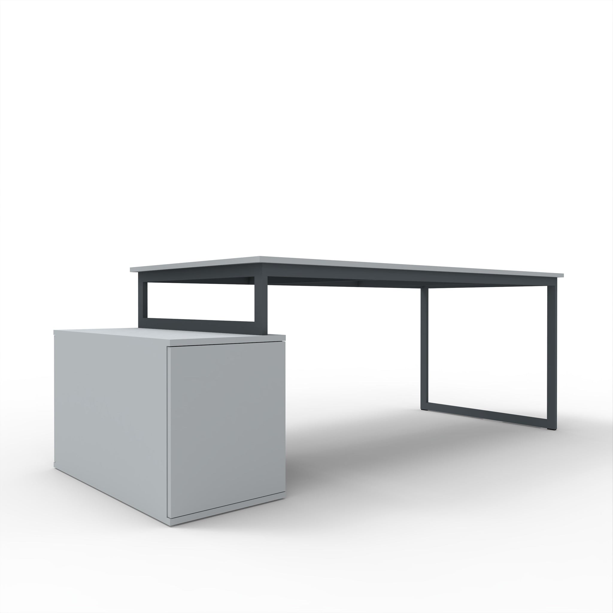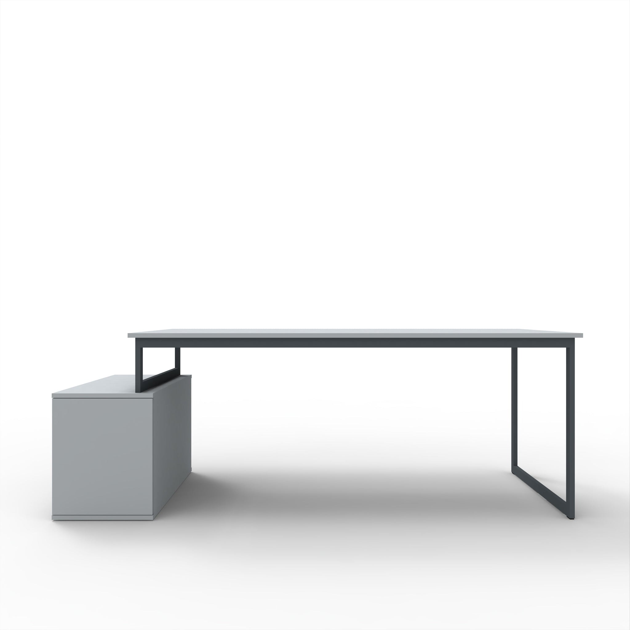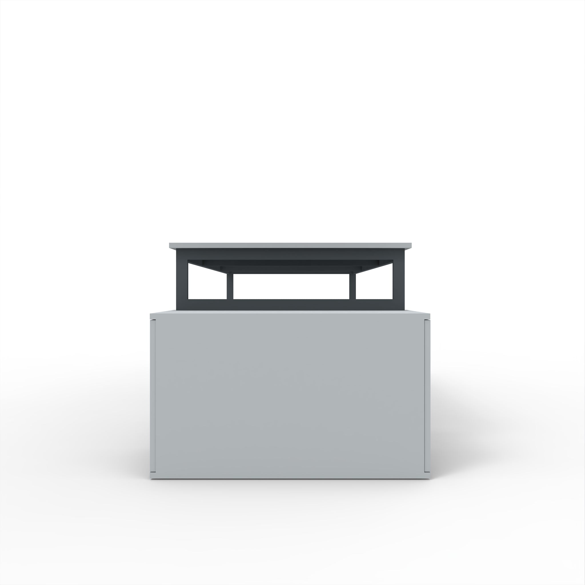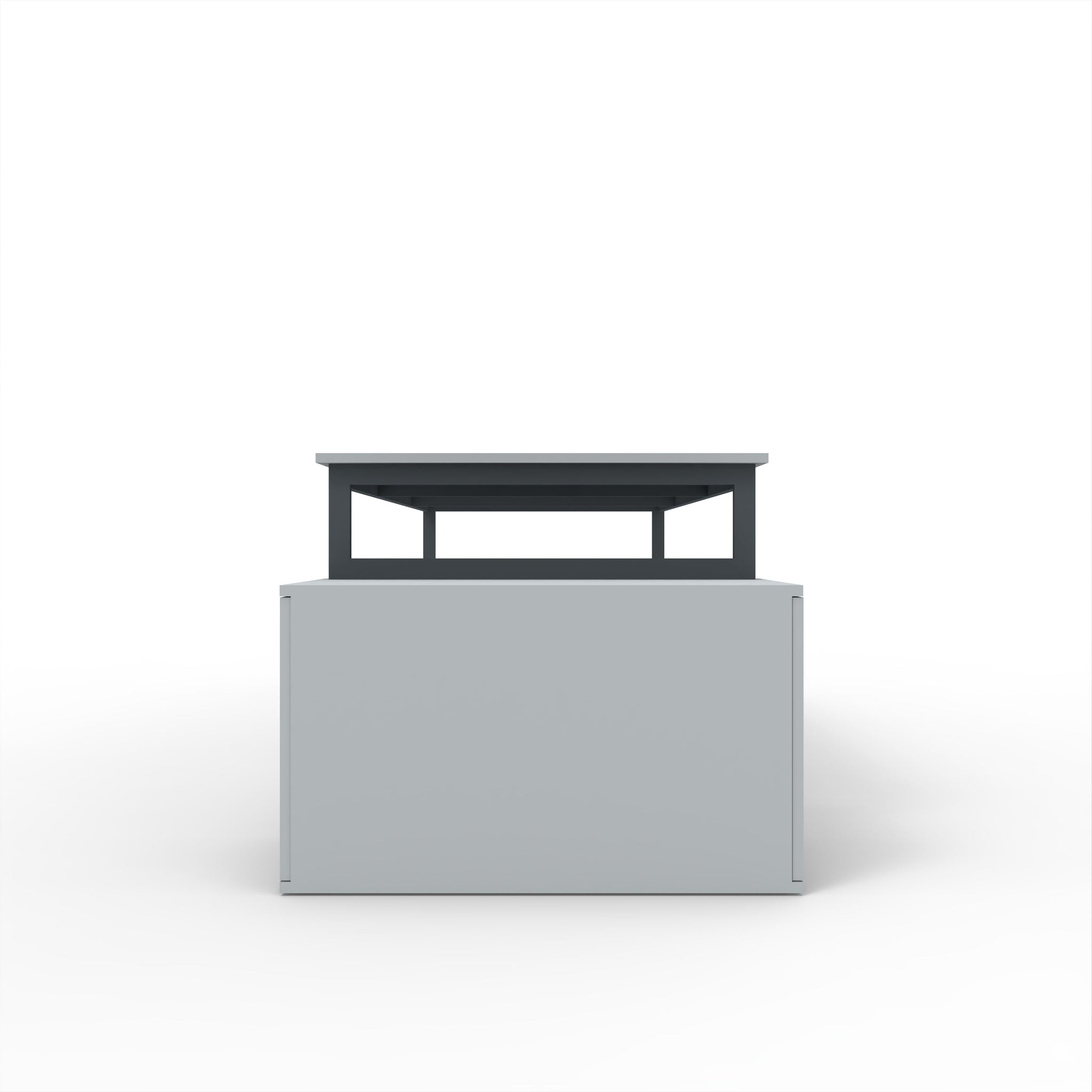 Estrutura em ferro lacado a cinza, tampo em melamina cinza