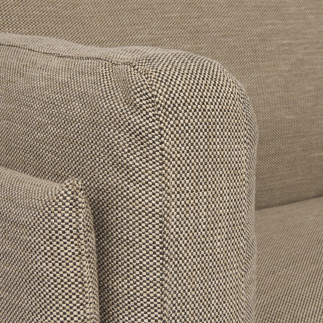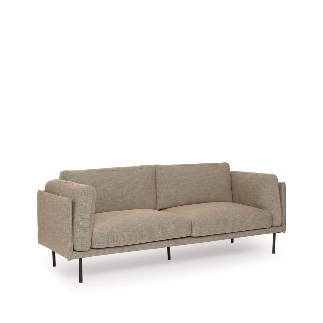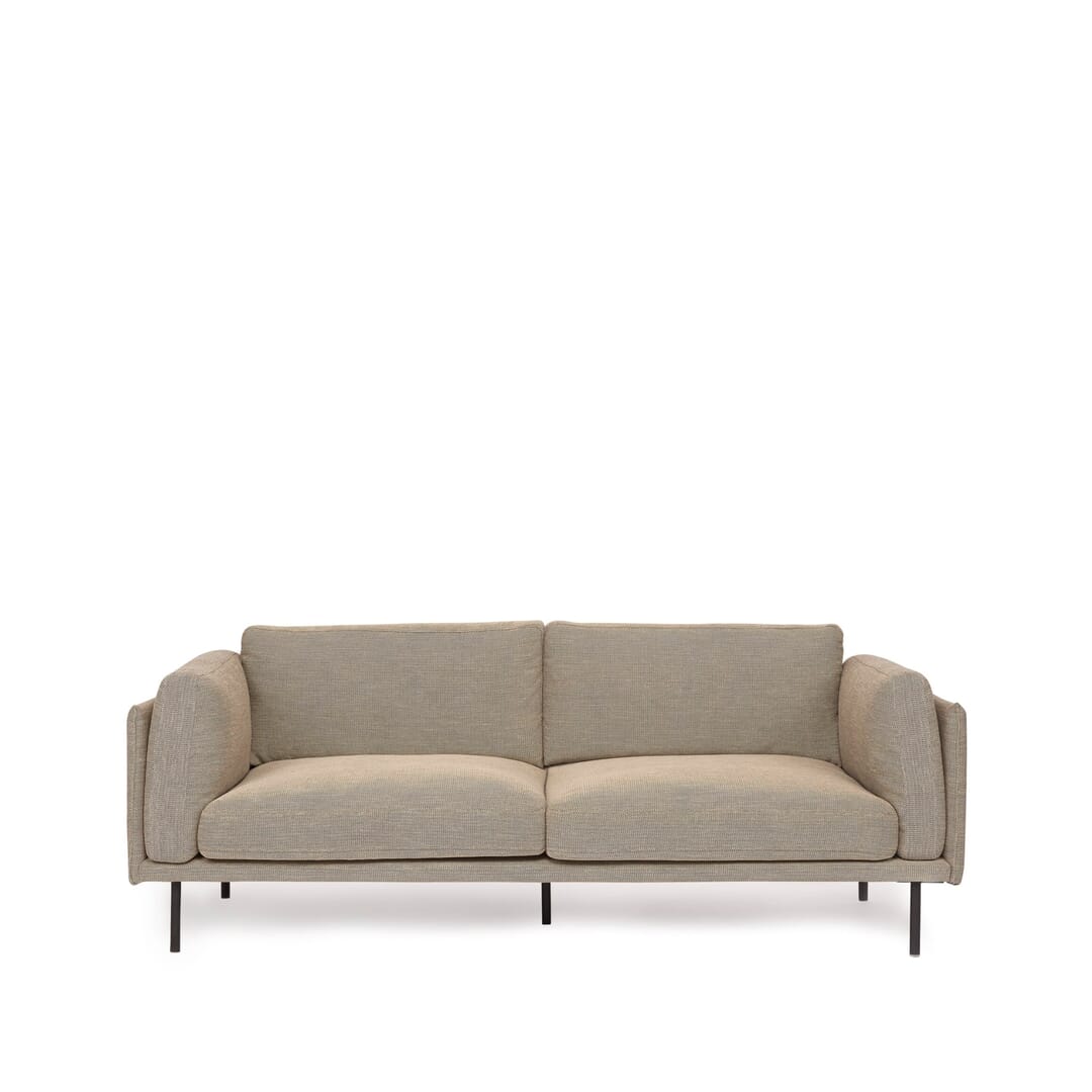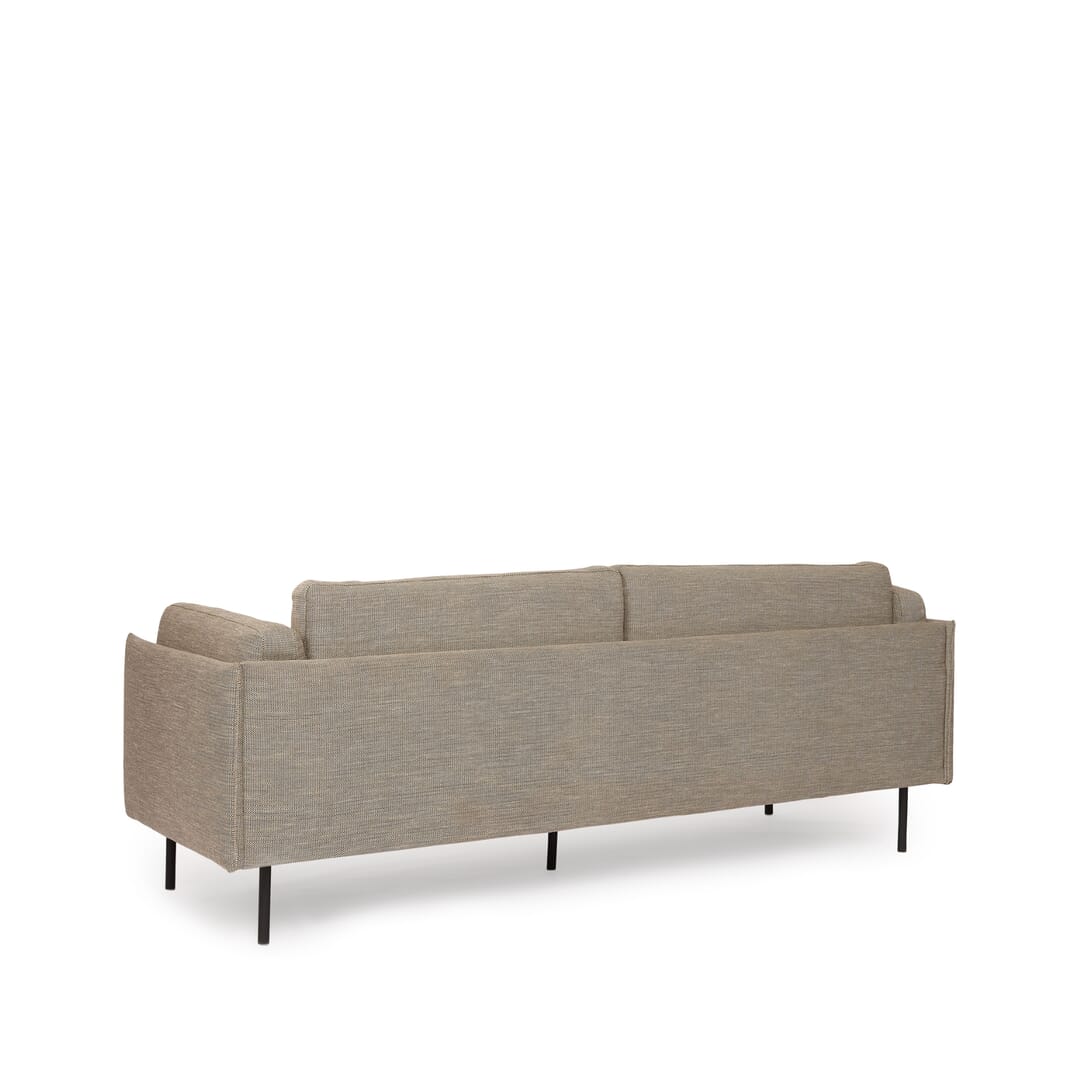 Sofá de 3 lugares Estrutura em pinho maciço. Almofadas com enchimento em espuma de alta densidade 36 Kg/m3. Capas em tecido 100% poliéster. Pés em metal. L. 204 x A. 86 x P. 93 cm.