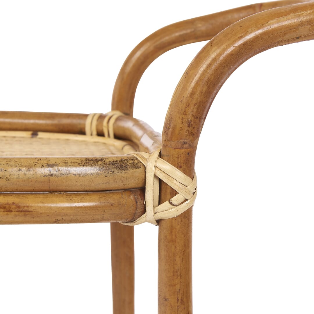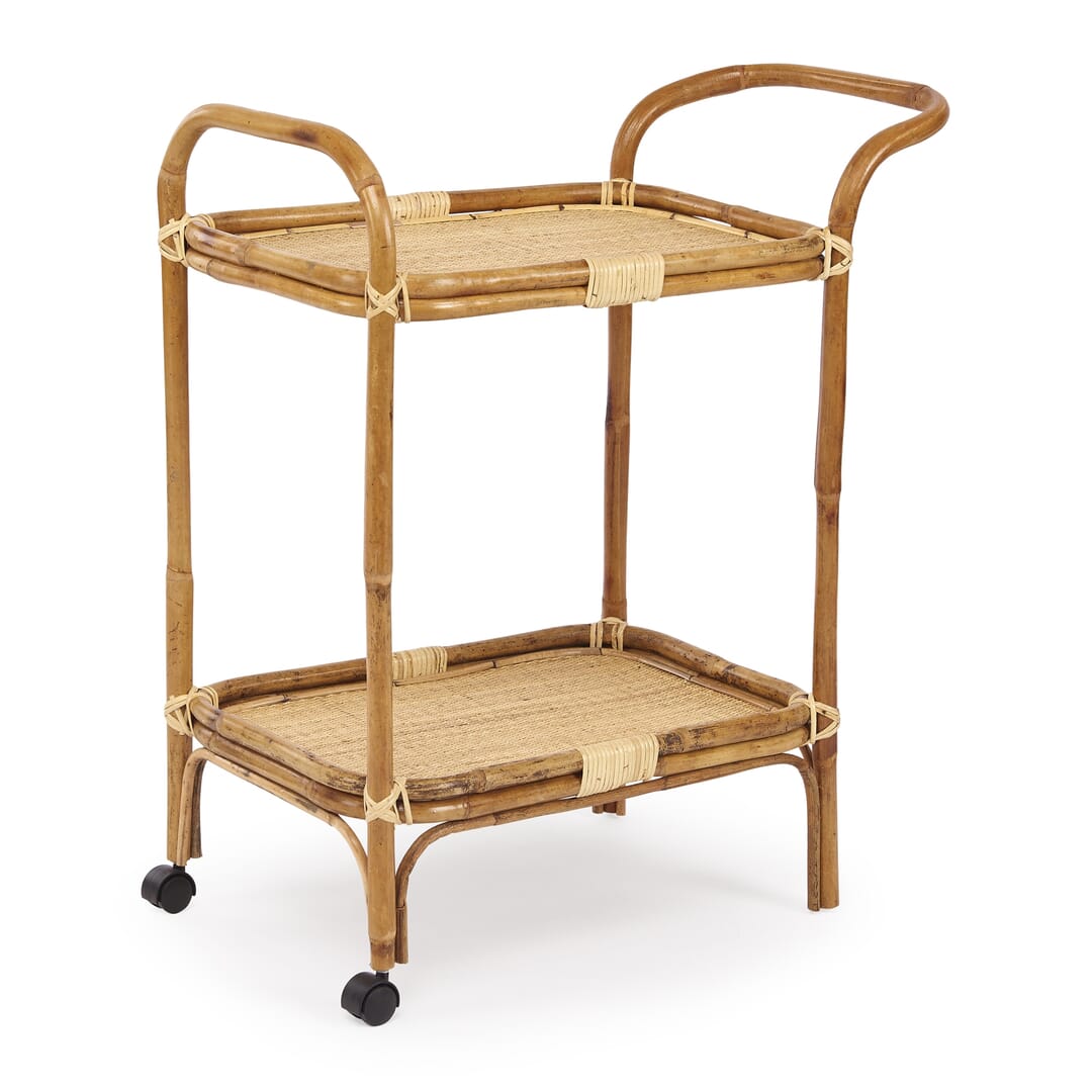 Carrinho de apoio Estrutura e prateleiras em rattan natural. Rodízios giratórios. L.90 x A.88 x P.45 cm