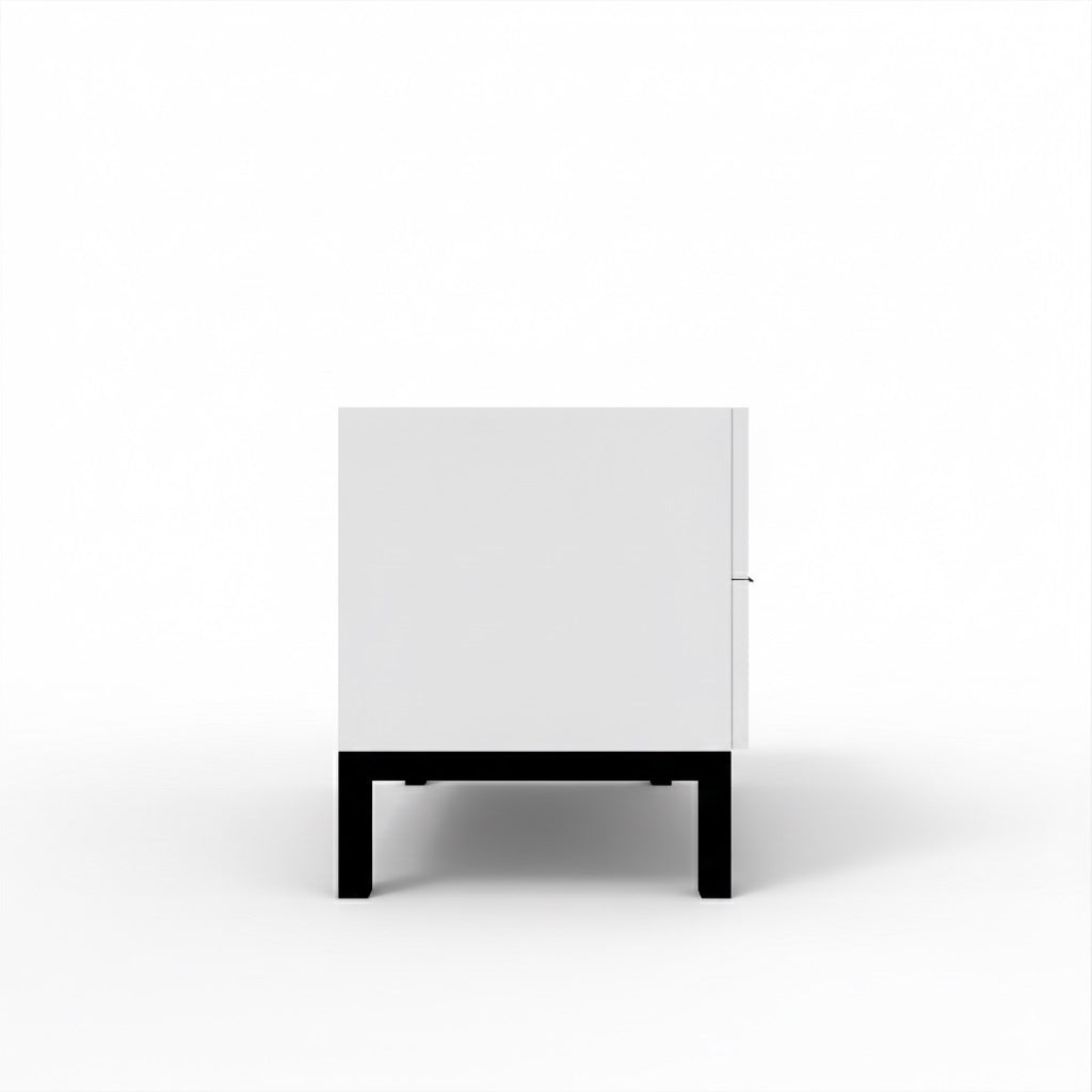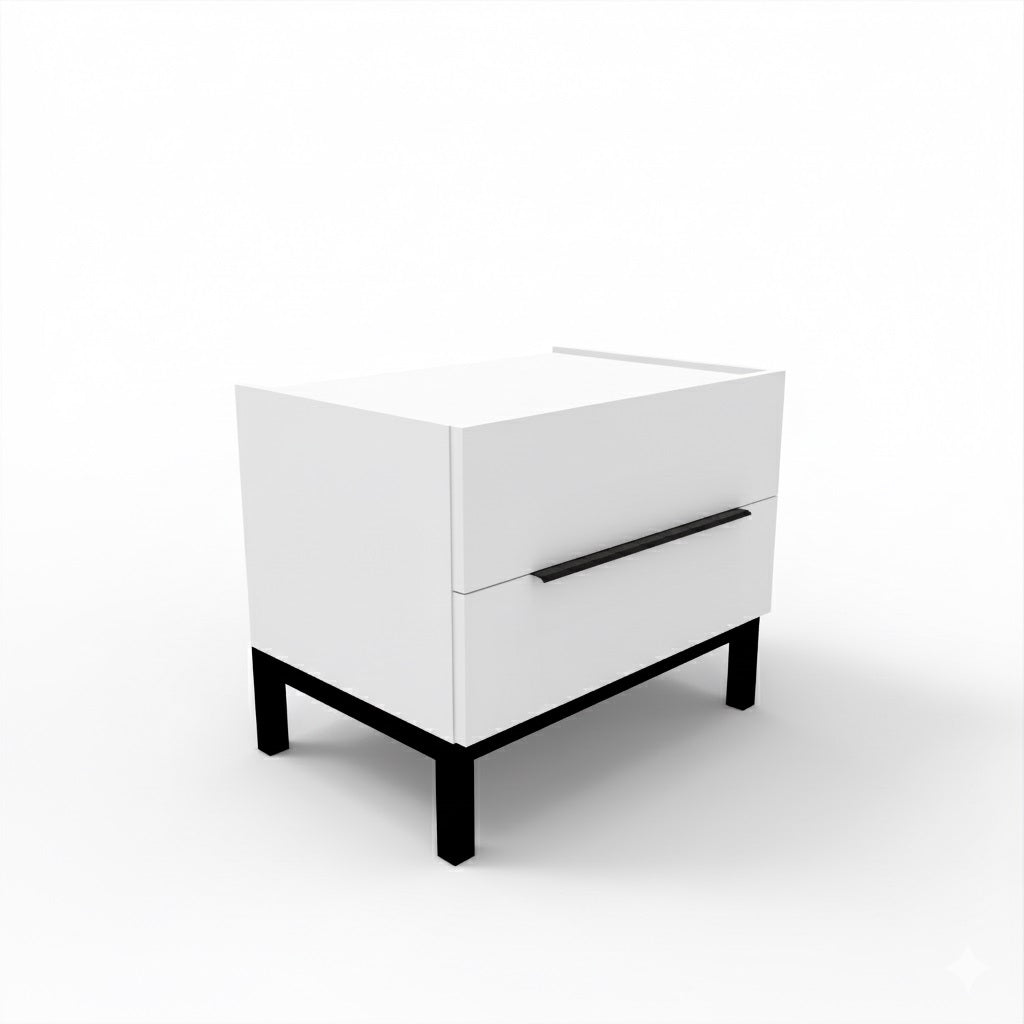 Estrutura em MDF branca, estrutura para suporte em ferro lacado em preto, com 2 gavetas
