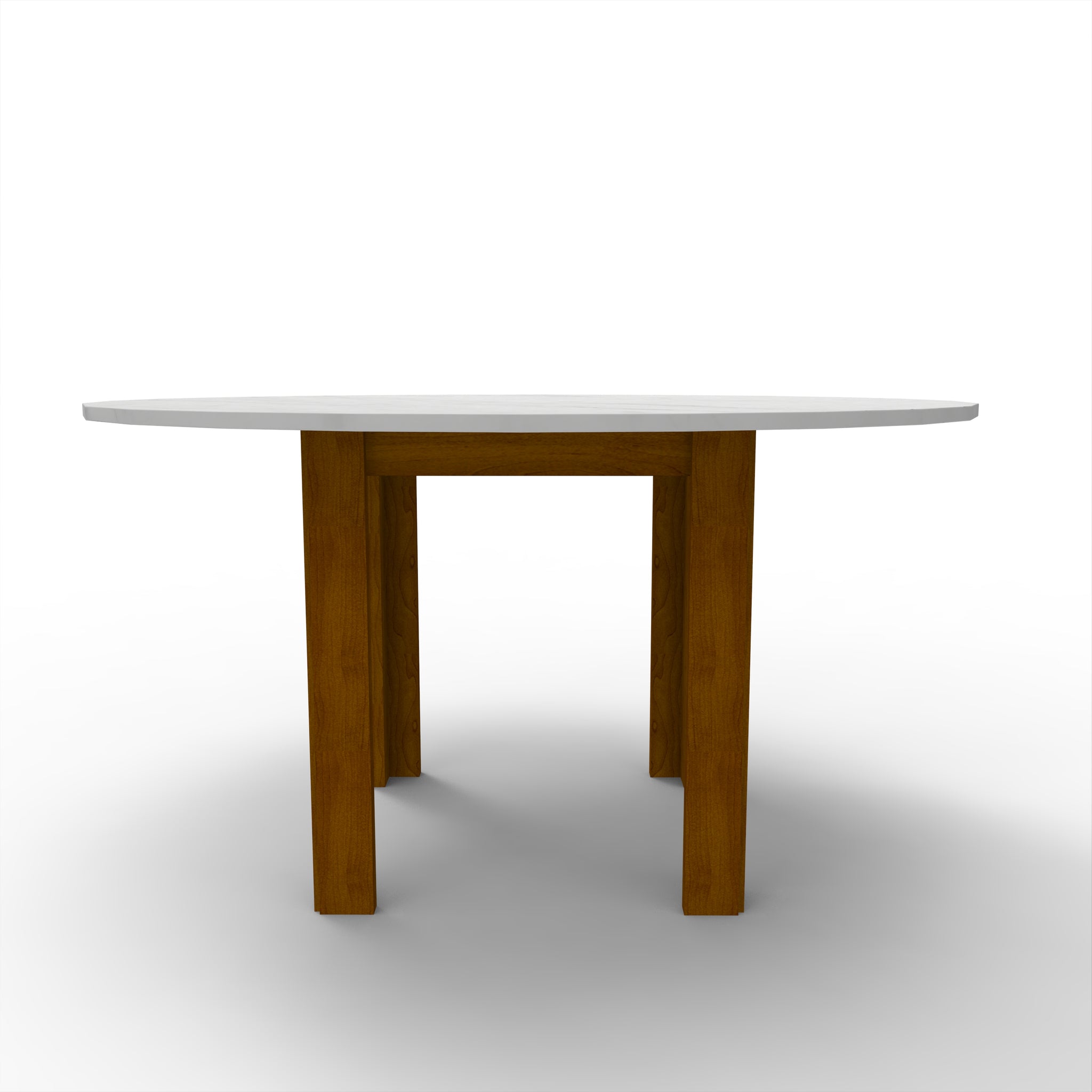 Mesa de jantar, estrutura em madeira maciça, acabamento em velatura carvalho, tampo em pedra mármore branca Namibe
